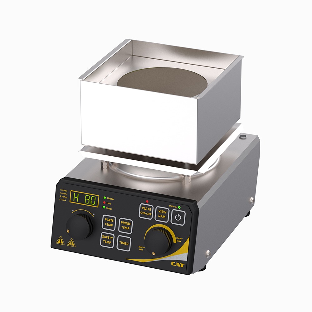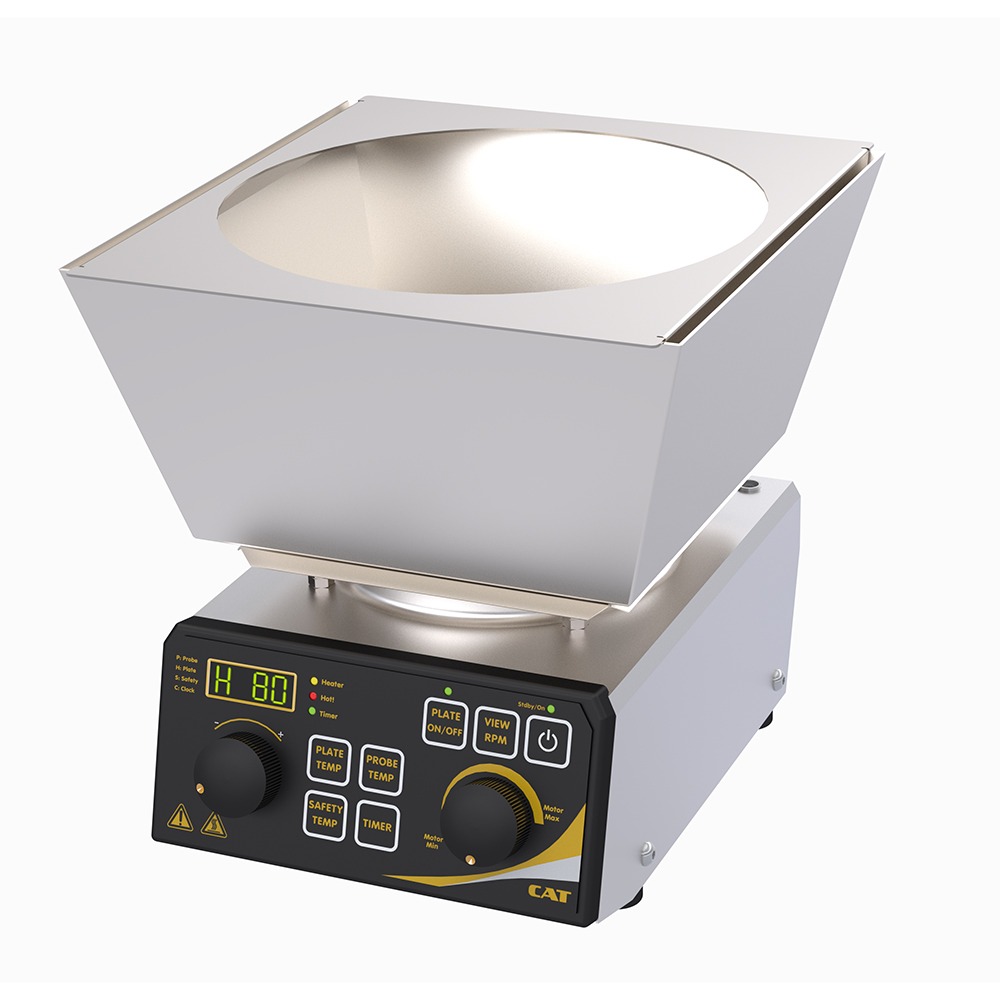 Studiati appositamente per contenere recipienti a fondo sferico, questi agitatori magnetici riscaldanti CAT sono disponibili in due versioni, il modello KM16.4D per recipienti con volumi compresi tra i 100 e i 500 ml e il modello KM16.7D per recipienti con volumi compresi tra i 1.000 e i 2.000 ml.