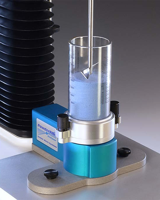 La costruzione precisa e l’accurata rifinitura delle lame assicurano la perfetta ripetibilità dei risultati. Il sistema di misura può essere montatosu un analizzatore di struttura mono o doppia colonna in pochi minuti. In questo modo si può avere un analizzatore di struttura e un reometro per polveri in un unico strumento. Anche il software è in grado di gestire entrambe le configurazioni.